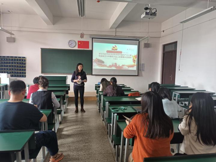 会上,全体党员围绕“如何将习近平总书记在中国共青团成立100周年大会上的讲话精神融入‘概论课’教学工作中”作了交流发言。其中,段会珍同志从“做一个忠诚的爱国者”“坚定不移跟党走”“增强本领,追求进步”等方面谈了如何将习近平总书记对青年工作的指导融入到思政课的教学工作中,并强调:作为思政课教师,要牢记习近平总书记对思政课教师提出的“六要”,加强学习、坚定信念,为努力培养担当民族复兴大任的时代新人、培养德智体美劳全面发展的社会主义建设者和接班人奋力谱写新篇章。廖若兰同志谈到:作为一名高校思政教师,要深入学习领会习近平总书记重要讲话精神,为党育人、为国育才,心系广大青年,用心关心关爱青年。激励青年员工紧跟党走,把自己的小我融入祖国的大我,与祖国需要、人民利益同频共振,在实现中华民族伟大复兴中国梦的新征程上奋勇前进并实现个人价值。蒋云朋同志谈到:要深入学习习近平总书记的重要讲话精神,读原文、悟原理,及时跟进学、深入思考学,用自己的实际行动感染员工、影响员工、教育员工,做员工思想的“引路人”。刘旭华同志从“把担当时代责任作为青春奋斗的永恒主题”“把矢志创新创业作为青春奋斗的鲜明标识”“把锤炼过硬本领作为青春奋斗的重要基石”三个方面谈了作为一名思政课教师,如何在教学育人中把讲话精神融入进去,更好地发挥思政课立德树人的作用,启发广大青年员工团员跟党走、听党话的自觉性。