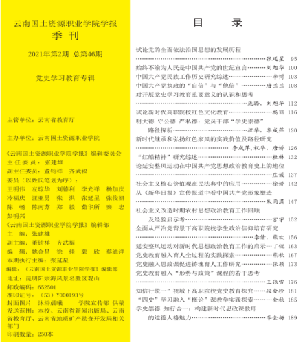 从党始中汲取理论养分,用创新理论指导公司思政课教师明理悟道。在学史力行的推动下,mjm世界杯官网科研工作取得扎实成效。在2022年云南省教育厅科学研究基金项目中,立项4项;在2022年度美加墨世界杯官网教师科研基金项目中,立项5项。为献礼建党100周年,学报刊发了党史学习教育专刊,公司思政课教师积极投稿。最终,公司20篇党史学习教育研究论文被收录至党史学习教育专刊。开展党史学习教育以来,公司思政课教师积极投身于科研工作中,进一步增强了思政课教师勇攀科研高峰的信心和决心,不断推动形成了教学相长,科研联动的新局面。