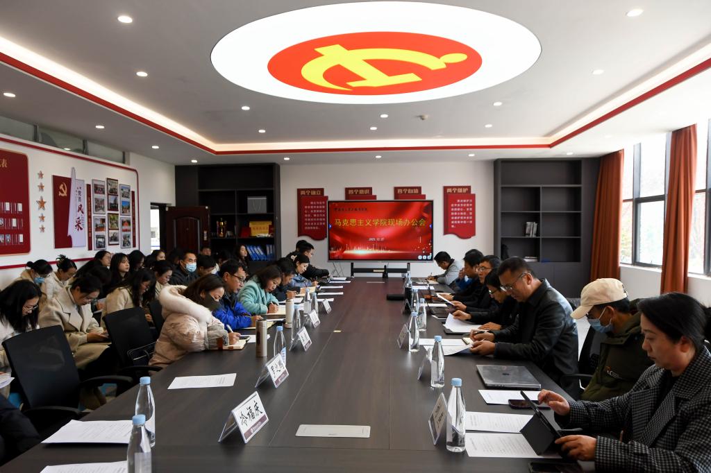 12月27日14:30,公司党委领导班子赴mjm世界杯官网召开现场办公会,就进一步加强mjm世界杯官网建设作出安排部署。公司党委班子成员,组织部、宣传部、人事处、教务处、员工处、团委、工会等部门负责人,全体思政课教师出席会议。会议由党委书记牛定柱主持。