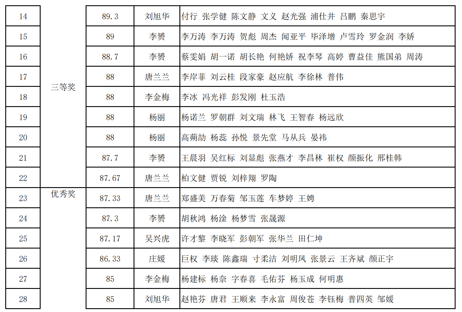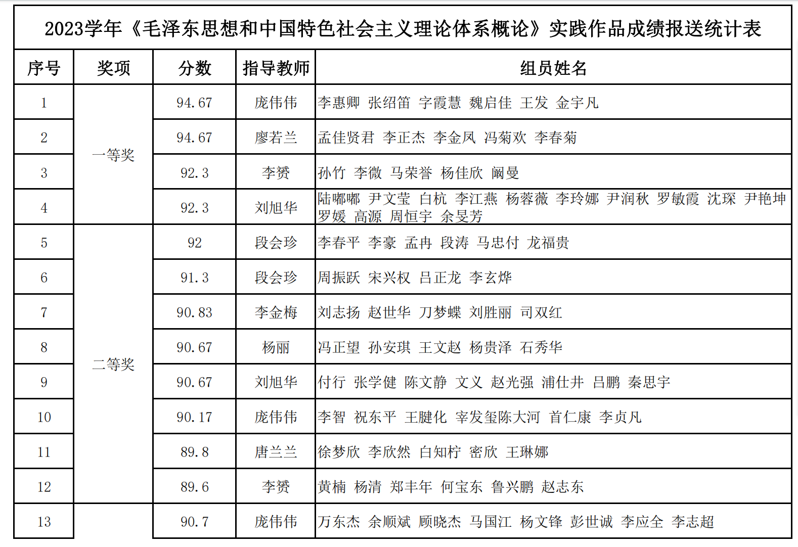 作品评选主要分为四个环节。首先,班级海选。任课教师分别采用不同的方式从所授班级中推选代表作品;其次,教研室对所有作品进行筛选,选出其中比较优秀的作品;接着,将筛选出的作品进行编号分组,以小组为单位对筛选出的作品进行评分;最后,按照每组教师的平均分得出每个作品的最终得分。其中,一等奖4个,二等奖8个,三等奖10个,优秀奖12个。