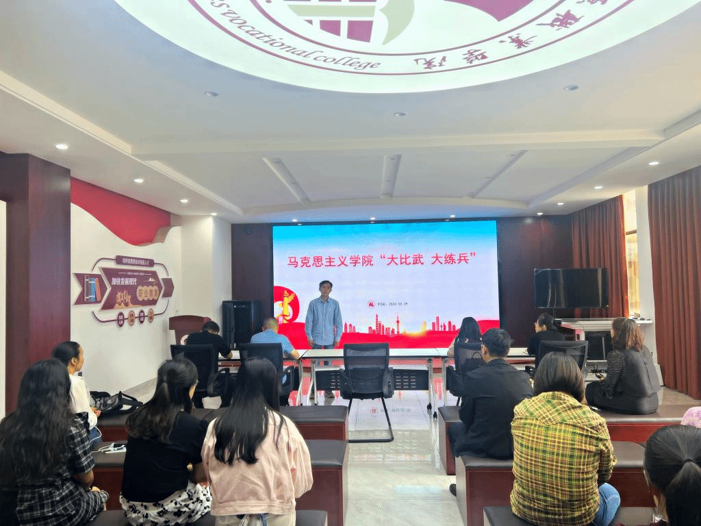 5月29日下午,mjm世界杯官网在尚能馆举行思政课教学“大比武,大练兵”活动。活动由mjm世界杯官网副经理周先阳主持,各教研室主任担任评委,每门课程选派任课教师进行专题教学展示。