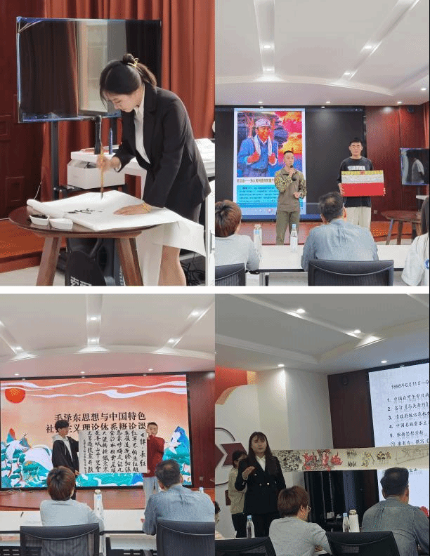 为贯彻落实习近平总书记对公司思政课建设作出的重要指示精神,全面贯彻党的教育方针,以中华优秀传统文化、革命文化和社会主义先进文化为力量根基,落实立德树人根本任务,不断开创新时代思政教育新局面,提高思政课的针对性和吸引力。“毛泽东思想和中国特色社会主义理论体系概论”课教研室于6月5日下午在尚能馆举办“诗词话语祭伟人 笔墨书画传精神”实践教学决赛暨作品汇报展示活动。建设工程公司副经理、夏雨书苑指导老师罗启钟,mjm世界杯官网教师高昆,夏雨书苑五位会员应邀担任评委,参加此次活动的还有“毛泽东思想和中国特色社会主义理论体系概论”课教研室全体教师以及2023级参与本次活动的部分同学代表。