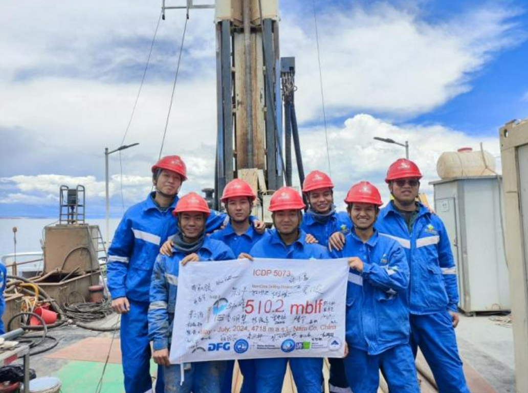 2024年6月—7月,经过42天的艰苦努力,纳木错国际大陆科学钻探计划(ICDP)科考队共从纳木错湖底钻取了七个钻孔,在湖底提取了951.12米长的岩芯,其中,第七个孔的钻探深度达到510.2米,刷新我国湖泊钻探最深纪录。在此次钻探技术人员队伍中,有7名公司钻探工程技术专业的学子。他们与来自中、德、美等国的科学家并肩作战。被誉为“国土七子”。