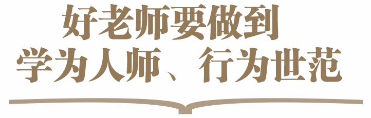 放眼未来,总书记思量长远:“培养社会主义建设者和接班人,迫切需要我们的教师既精通专业知识、做好‘经师’,又涵养德行、成为‘人师’,努力做精于‘传道授业解惑’的‘经师’和‘人师’的统一者。”